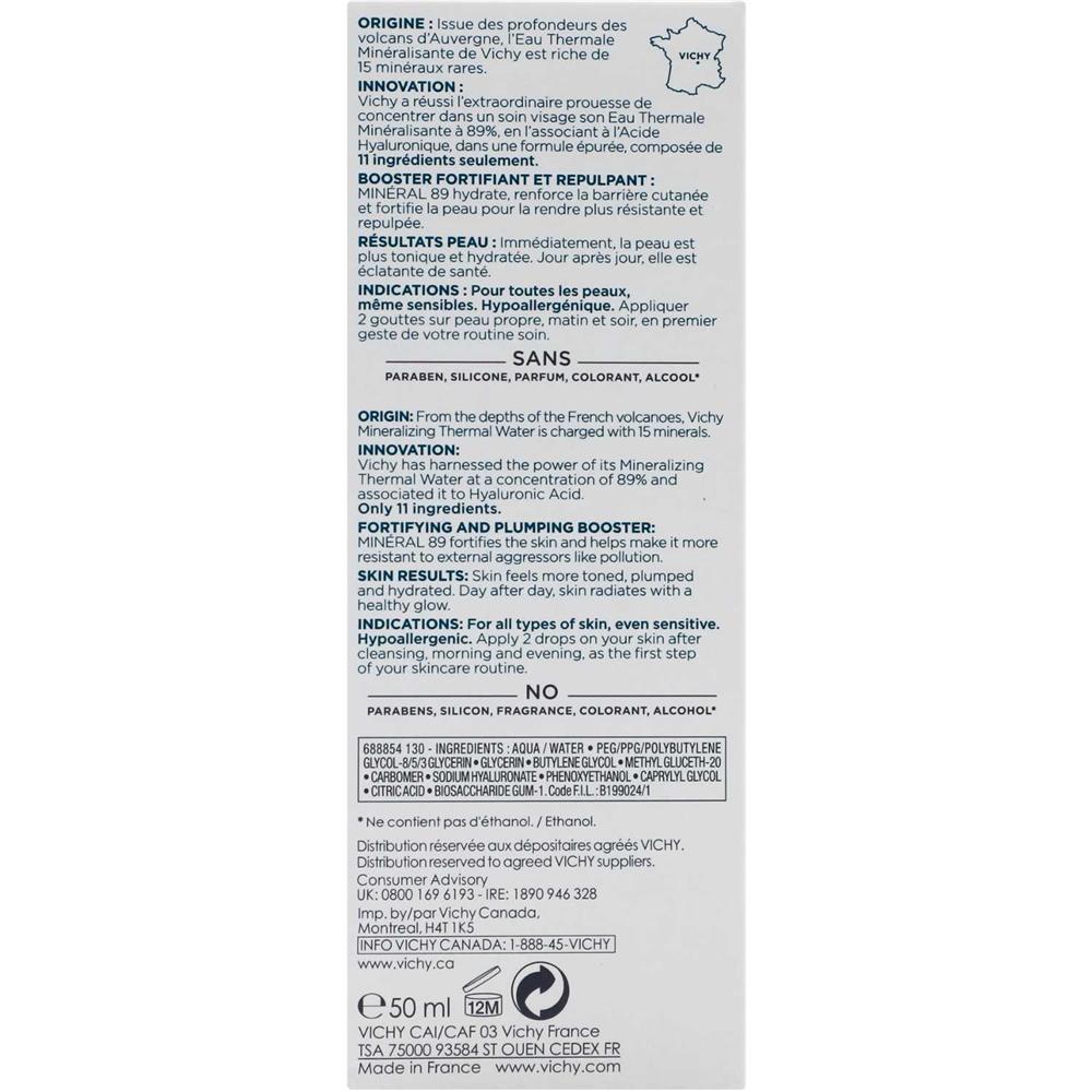 Formulated with 89% Vichy Mineralizing Water and natural origin Hyaluronic Acid, Vichy Mineral 89 hydrates, plumps and fortifies the skin against daily aggressors like pollution, stress, and fatigue. Keep your skin hydrated, radiant and quenched with health with Vichy’s minimalist, fragrance-free formula with only 11 ingredients.